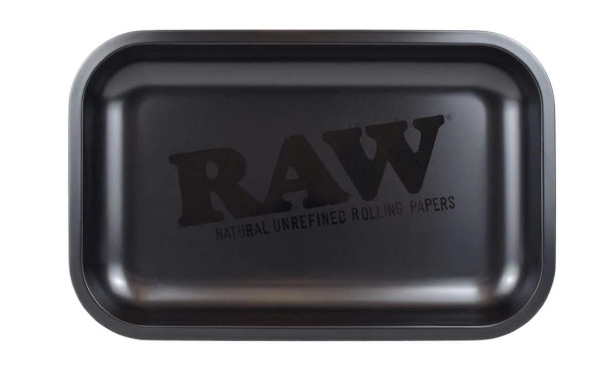 RAW Murder’d Rolling Tray RAW Black is the only way to roll. Kill some time with this elegant Murder’d metal rolling tray in sleek matte black. RAW Murder’d Rolling Tray is available in Small. Small: L 11” X W 7” X H 1”