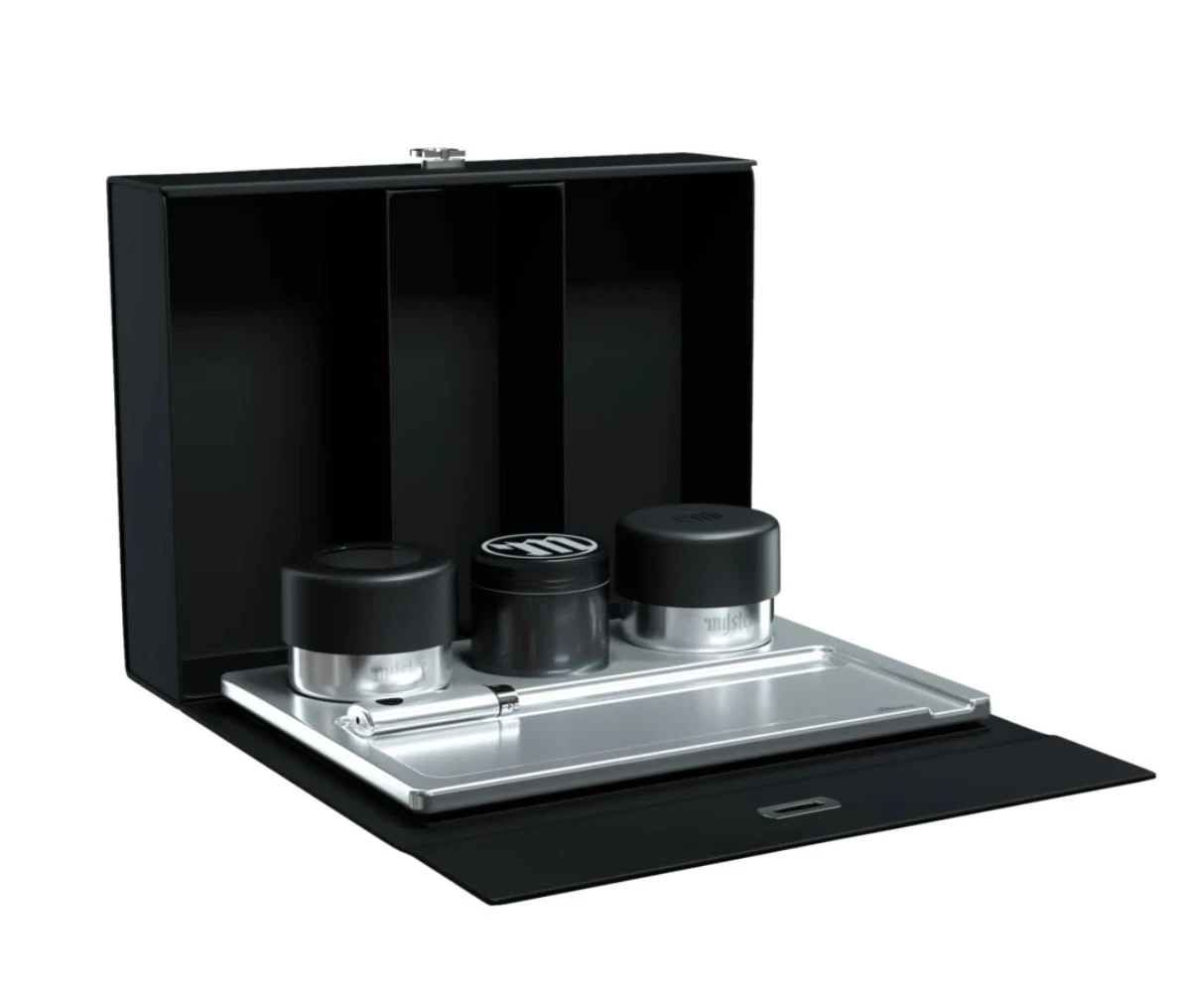 This kit includes everything you need for an efficient ritual. Having everything in one place keeps your coffee table or desk organized and clean. Having all the parts magnetically attached to the tray makes the Stashtray effortless to use on the go. It's like a liquor cabinet but for people who enjoy other fine things...